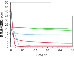 Voc などのホルムアルデヒド、タバコのアセドアルデヒド、トイレの臭いの元のアンモニアやトリメチルアミン など、半永久的に除去します。 |